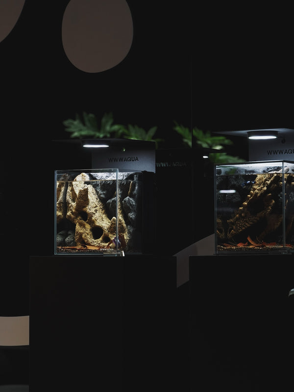 Not a desk tank. A sculpted micro-landscape—designed to quiet the room and simplify the ritual.